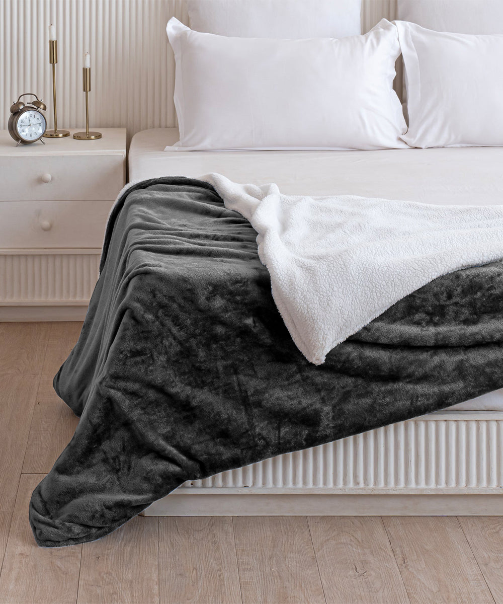 Fibernomad Reversible Sherpa Flannel Blanket – Double Size (220 x 228 cm)