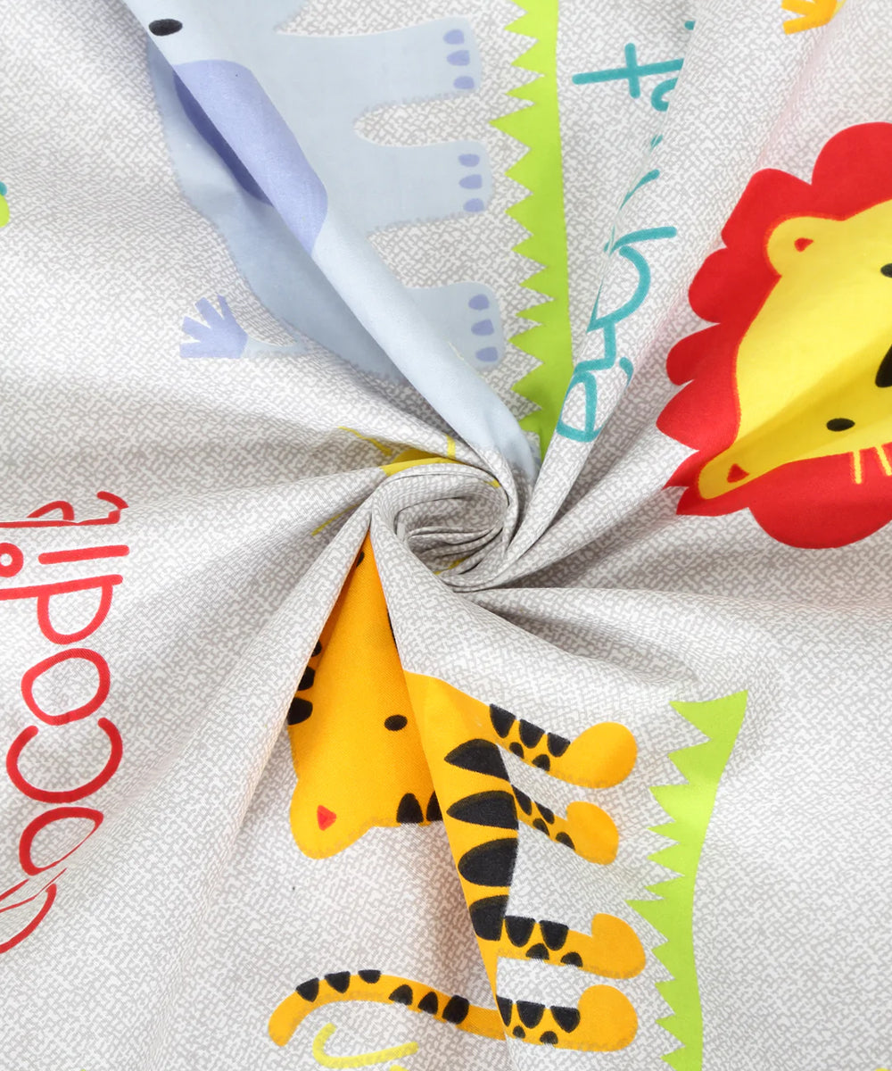 Jungle Safari Kids Flat Double Bedsheet with 2 Pillow Covers
