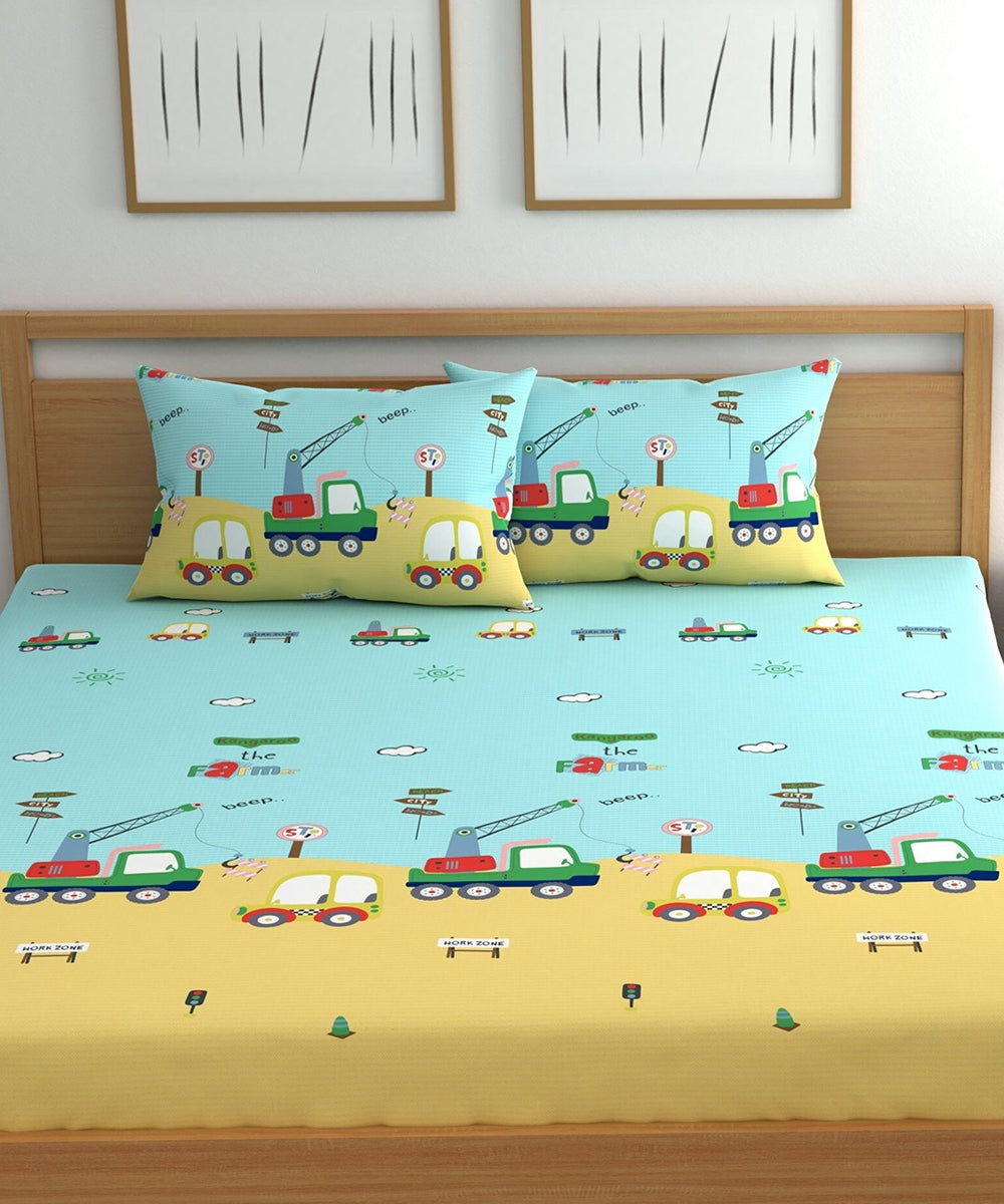 Little Builder Dream Kids Flat Double Bedsheet with 2 Pillow Covers
