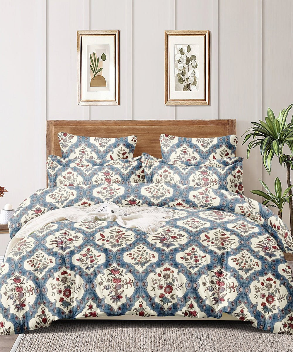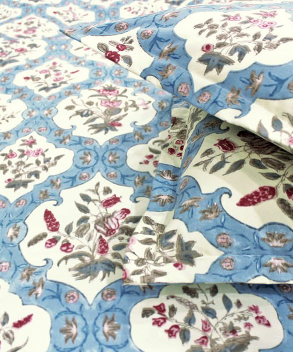 Blue Ethnic Flat Double Bedsheet With 2 Pillow Cover