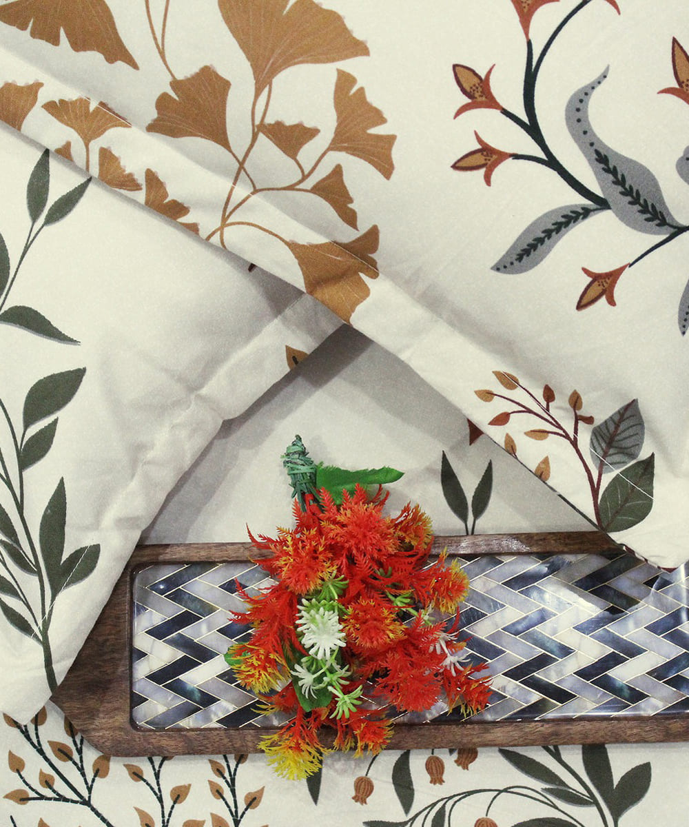 Autumn Breeze Flat Double Bedsheet With 2 Pillow Covers